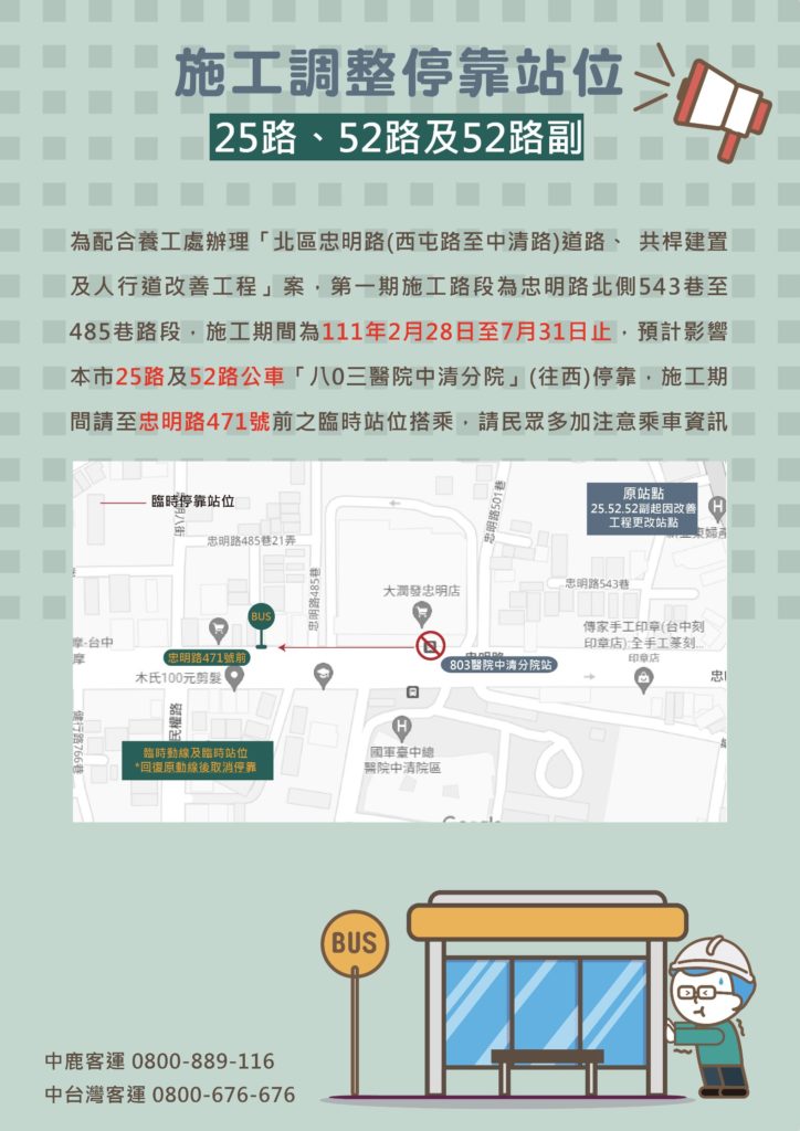[中鹿]臺中52、52副配合人行道改善工程站點遷移