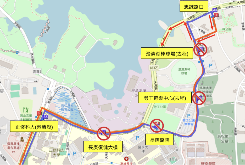 [漢程]高雄黃1路配合「大埤路道路刨鋪」改道通知路線資訊 / 2026-04-09 2026-04-09 調整日期:2026.04.11(六)20:00-2026.04.18日)08:00(依施工時間為準)調整路線:黃1調整內容: 【取消停靠】:澄清湖棒球場(去程)、勞工育樂中心(去程)、長庚醫院(雙向)、長庚復健大樓(回程) 【替代站位】:忠誠路口站、正修科大(澄清湖)站 【備 註】:如須查詢,請洽:0800-889-116 詳細班次時刻表請參考路線專頁,如有其他路線、班次相關問題,歡迎您撥打我們的免付費客服專線 分享此文:Facebook列印