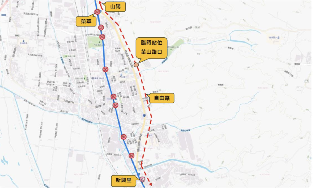 起駕改道:大肚市區沙田路一段至三段沿路實施改道,營運路線【180沙鹿―彰化】路線調整,改行自由路屆時「榮華」至「沙田自由路口」暫停靠站,可於臨時站位「華山路口」搭乘,不便之處,敬請見諒。